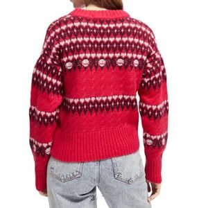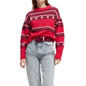 NWT Scotch & Soda Planet Love Cable Knit Fair Isle Wool Alpaca Blend Cosmic Pink Sweater. Soft, warm and cozy with a stretchy blended knit and wide ribbed crewneck.