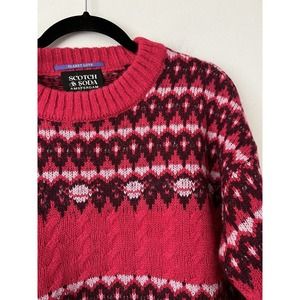 NWT Scotch & Soda Cable Knit Fair Isle Wool Alpaca Blend Pink Sweater Size Large