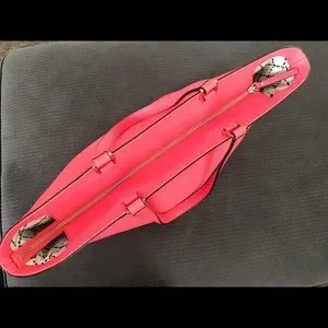 Strawberry Pink with gold tone hardware