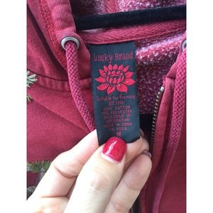 Vintage Lucky Brand womens zip up hoodie sweatshirt M embroidered red Y2K crane