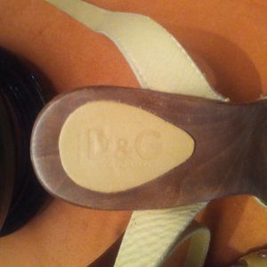 Dolce and Gabbana wooden platforms metal studded barely worn criss cross ankle s