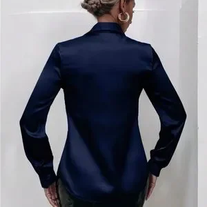 Luxe Stain Button Down Up Shirt Top Blouse Work Office Navy Blue