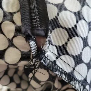 This is brand new without tags has never been washed or won. However skirt does have small hole where zipper ends on side. it was sent to me like this. Almost like the stitching should have went down another inch on one side. if you are at all handy with needle and thread, this is an easy fix! shown in photos.