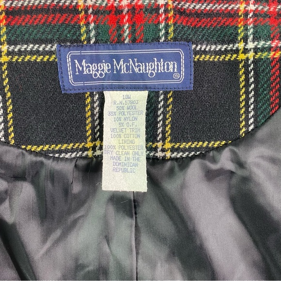 Vintage 90s Maggie McNaughton Black Plaid Wool Blazer Jacket XL