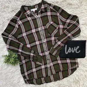 🎉HP🎉 Blue Pepper Day to Day Button Down Plaid Shirt 💗 Olive Cranberry White