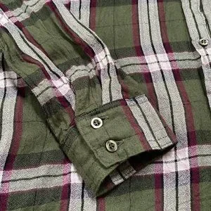 Blue Pepper Day to Day Button Down Plaid Shirt in Olive, Cranberry, White & Black. Curved hi love vented hem. Roll tab adjustable sleeves. Chest pocket. Coordinating olive buttons.