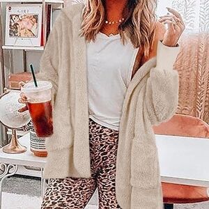 MILITARY HIPPIE Plush Sherpa Fleece Teddy Coat with Roomy Hood