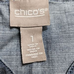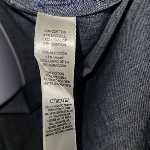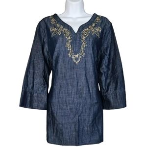 NWOT Chicos blue chambray denim beaded embroidered blouse top Womens Medium