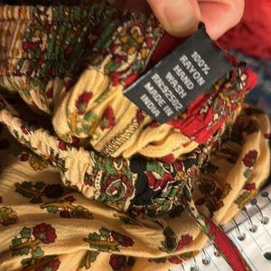 New with tags. Unique print, rayon fabric, made in India. The waist is 13 inches while flat. The waistband stretches to 21 inches or approximately 42 inches around. The hips are 30 inches or approximately 60 inches around. The inseam is 23 inches. The length is 37 inches.