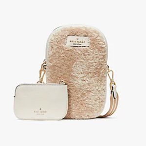 KATE SPADE ROSIE FAUX SHEARLING NORTH SOUTH ZIP PHONE CROSSBODY