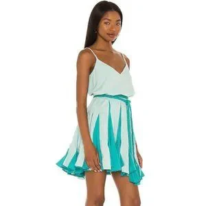 Mini two toned dress from Rhode with adjustable straps and a detachable braided waist tie. A perfect summer/vacation/garden party dress. Can dress up or down. Have worn it once, is in excellent condition. Size small (I'm usually a size 6), 100% cotton.