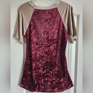 Maroon Velvet Top with Lace Embellishment