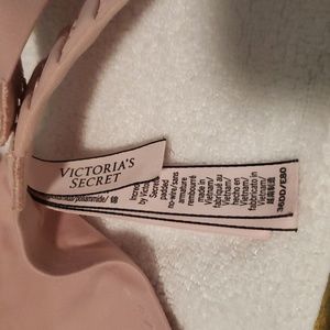 Victoria's Secret lounge bra in light pink. This has no underwire or binding elastic. It does have some padding on the cups. Only worn once and washed in hypo-allerginic fragrance free detergent. Kept in a smoke free home in a room that animals don't have access to.