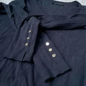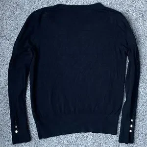 Basement Basic Black V-Neck Sweater - Size XS Cuffed Long Sleeve Golden Buttons