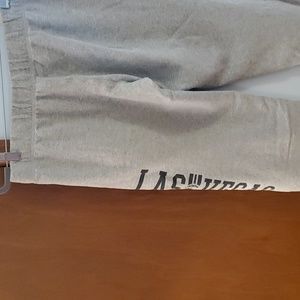 Las Vegas down left leg. have been worn and washed, still good, except for drawstring. minor pilling at upper thigh. relaxed fit