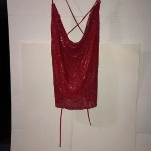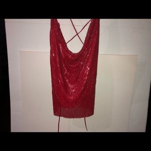 New with out tags vintage exotic dancer lightweight tiny chain linked metal top. It has real leather strings, silk material backing. If you have any questions just ask me.