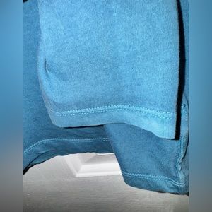 Long sleeve Tee shirt with a hi collar, oversized Tunic Top. Last pictures of how the shirt would look on but not the color, Color in pictures or more blue which is not the color of shirt, to me the shirt looks like a bluish green turquoise color, New with Tags pit to pit measurement 21 1/2 inches, . B56