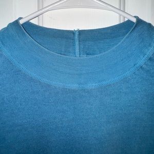 Free People *New* turquoise Bluish Green color Long Sleeve high collar Tee Shirt