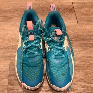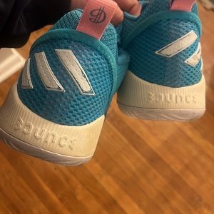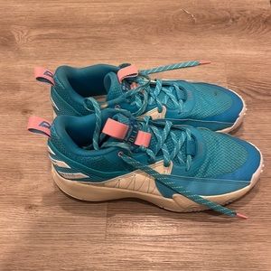 Donovan Mitchell Good condition , one small pull on top of left shoe , bottoms no worn traction perfect bottoms blue and pink