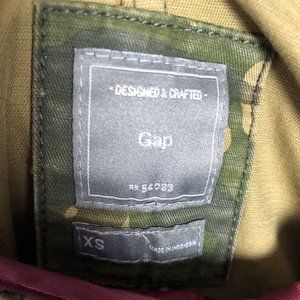 Gap camouflage lined jacket snow coat size small. Is a little faded in color but otherwise good condition, has one stain as pictured. Feel free to reach out with any questions!