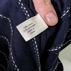 Crew neck. Perfect sleeves (slightly longer short sleeves for more coverage and total comfort). Sweater knit. No closure, pull-over style.