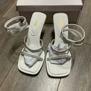 New in Box - Rhinestone Strap Heels – White | Size 8 | Wrap Around