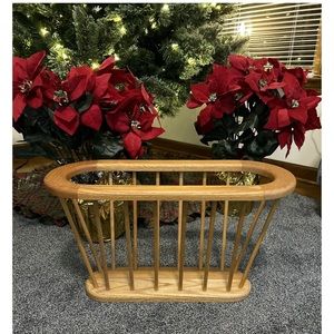 This mid-century magazine rack is a stylish addition to any home. Made in the USA by ICO, it has a modern design that works well with a variety of decor styles. The rack is made of oak wood and is free-standing, making it easy to move around and place wherever it's needed.