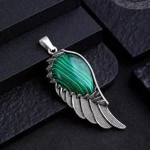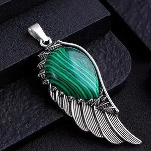 Malachite Synthetic Stone Wing Shape Pendant Necklace.