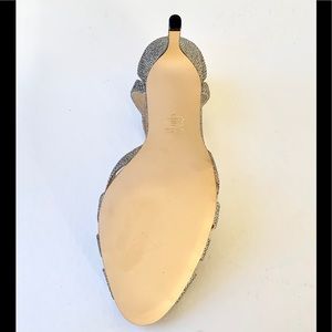 These beauties will add sparkle to any outfit. These shoes are elegantly designed with of tiny sparkles encrusted into the textile. Ankle strap with side buckle and open peek toe front.