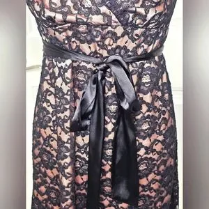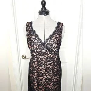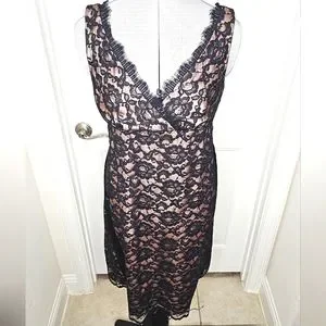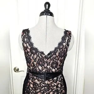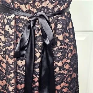 Classy Eliza J New York Black Lace & Nude Champagne Elegant Lady Cocktail Dress