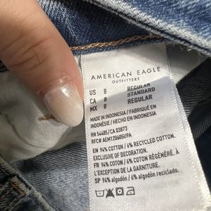 ‼️American Eagle Womens Jeans Size 8 Mom Jeans Hi Rise Boho Relaxed Fit Med Wash