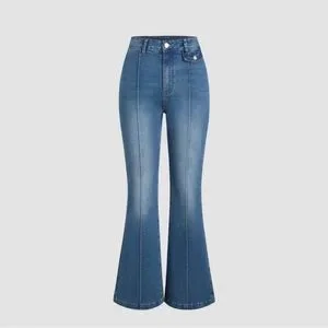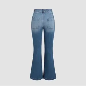 Beautiful flared jeans with a cute faux pocket accent at the waist and a unique stitching detail down the legs! These jeans very flattering. Bought them but were a tad too loose on me. New with tags!