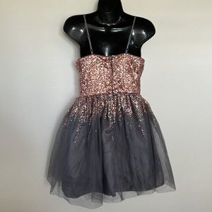 Franki by Francesca’s Rose Gold Sequin Grey Tulle Tutu Mini Dress