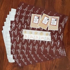 8-Burgundy hanger/ Posh / thank you themed 10 x 13 polymailers. (Yes, the white aren't as fun as a patterned polymailer, but I'm including ample stickers to decorate them. Mixing in the white helps to keep your cost down, but with the stickers and the handmade notecards, I promise your package will still deliver a wow! factor to your customer)