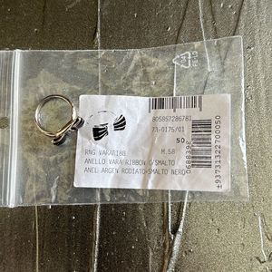 Salvatore Ferragamo Bow Black Enamel Ring Size 50 Sterling Silver 925