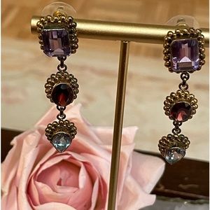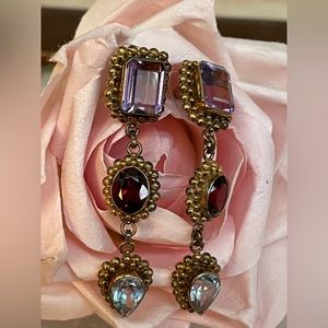 Vintage amethyst, garnet and blue topaz earrings set in gold plated SS.