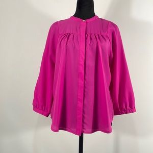 Gianni Binni Hot Pink Button down flowy blouse,pleated front and back,Large