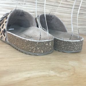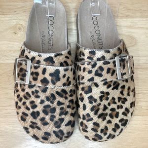 The Zella mule clog from Coconuts by Matisse. Slip-on styling with a cushioned footbed, .75” cork wedge and rubber outsole. These mules will catch everyone’s eye while being so comfy and stylish. Leopard dyed cow hair upper with buckle detail.