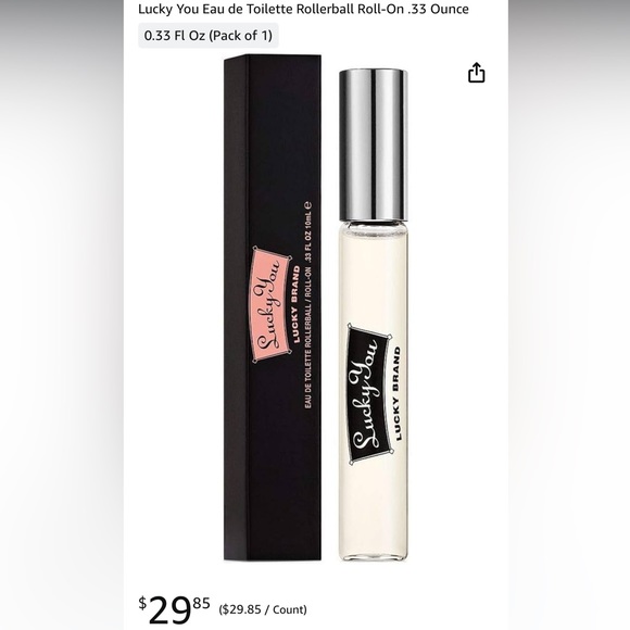 Classic Lucky Brand “Lucky You” eau de toilette fragrance rollerball. .33 fluid ounces. 90% full, tried out a couple times. It has a lovely feminine, refreshing and warm scent balanced with musk. Delicate and floral! It has top notes of water hyacinth, ruby red grapefruit, and freesia, middle notes of star jasmine blue poppy, and peony, and bottom notes of musk, Amber milk, and creamy Sandalwood! Open to questions & offers!!