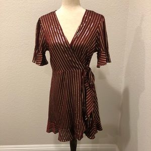 Timeless wrap dress silhouette. Pair this wrap dress with a leather jacket and your favorite booties or chunky heel!