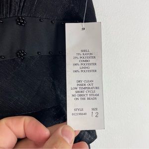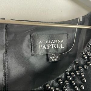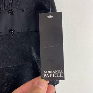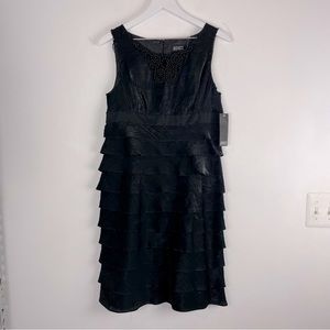 New With Tags Adrianna Papell Black Cocktail Dress Tiered Ruffle Sleeveless Beaded Neck