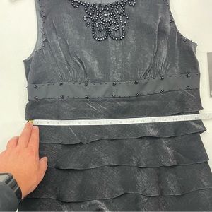 NWT Adrianna Papell Black Cocktail Dress Tiered Ruffle Sleeveless Beaded Neck