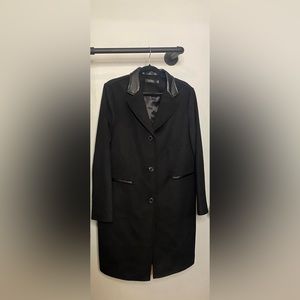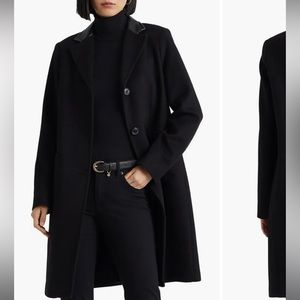 Lauren Ralph Lauren Faux Leather Trim Wool Blend Longline Coat