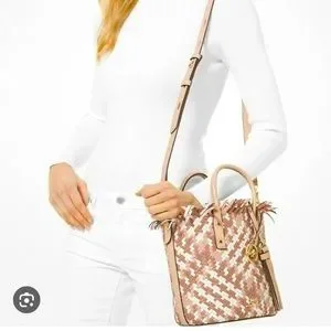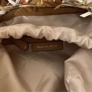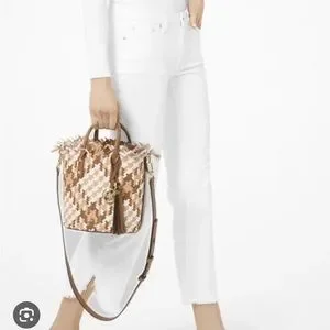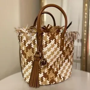 Michael Kors Marley Luggage & White Woven Bucket