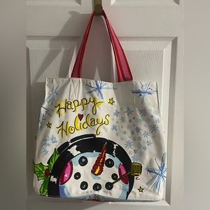 Interior has one zip pocket with yet another adorable snow lady with “Shine” “Joy” “Love”