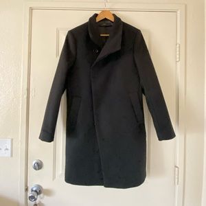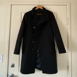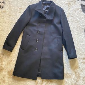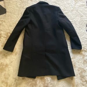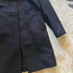 Zara wool trench coat/ pea coat. Size small. Very nice silhouette mock neck with hidden buttons. So chic.Mens but it can be unisex. In great shape! Get cute for the colder weather! Pairs well with leggings and boots.