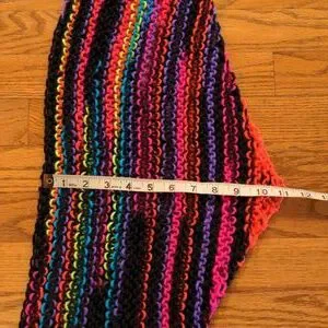 NWT! Handmade Acrylic Knit Triangle Scarf Black and Bright Multicolored OSFM