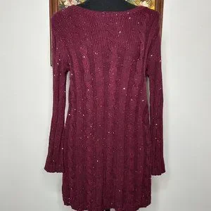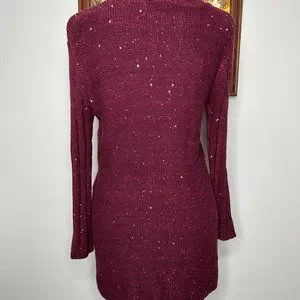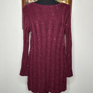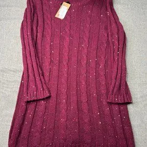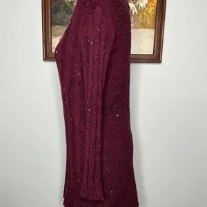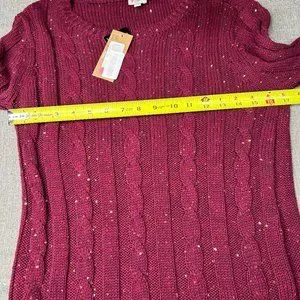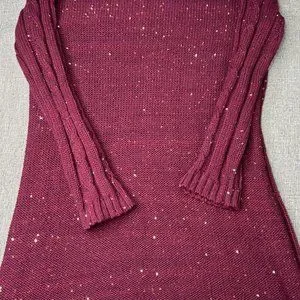 Cremieux Sweater Top Women's Small Round Neck Maroon w/ Gold Sequins NWT