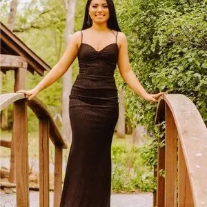 Windsor black glitter prom dress, floor length, stretchy and moveable