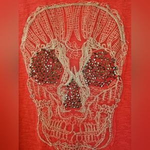 Fun pink t-shirt with embroidered skull. Eyes are filled with pyramid studs- a few have fallen out but not noticeable.